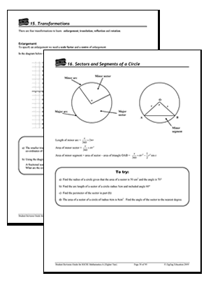 Each section includes notes, examples and practice questions.